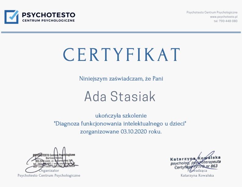• Psycholog dziecięcy Ada Stasiak • Inny •