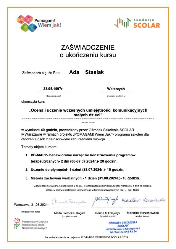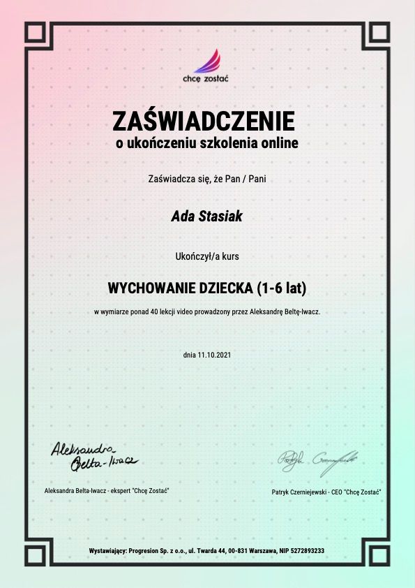 Bardzo dziękuję za opinię! Cieszę się, że mogłam podzielić się swoją wiedzą i doświadczeniem w pracy z dziećmi i rodzicami.