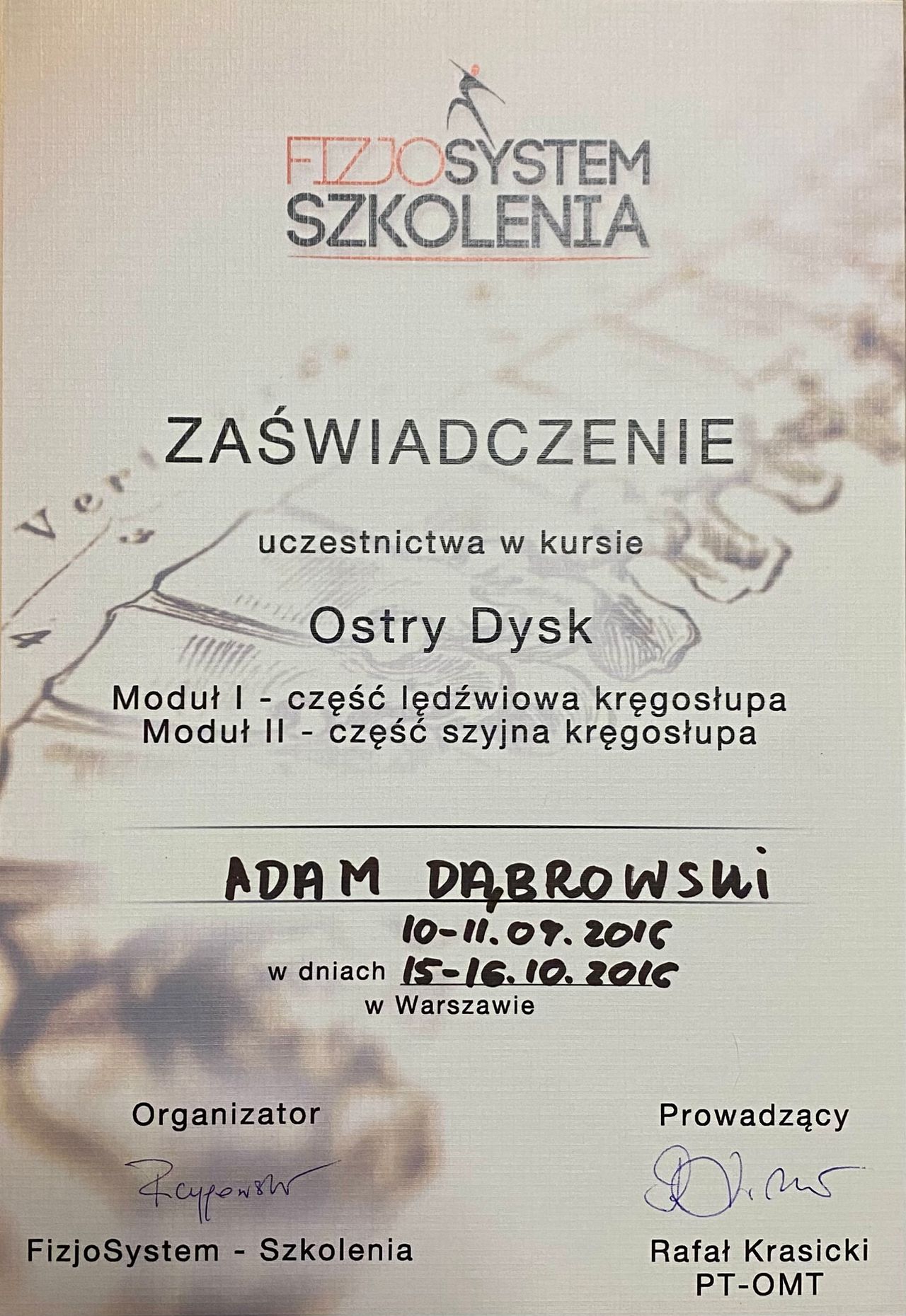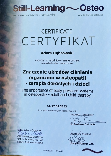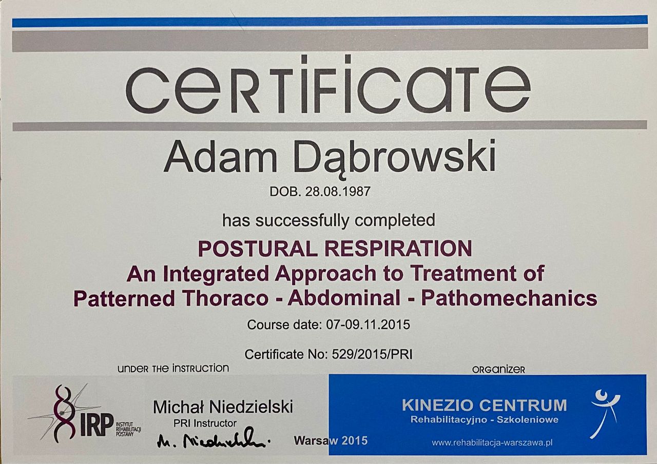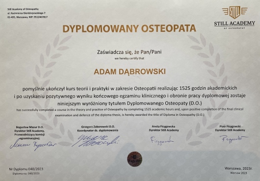 Magister fizjoterapii i dyplomowany osteopata.