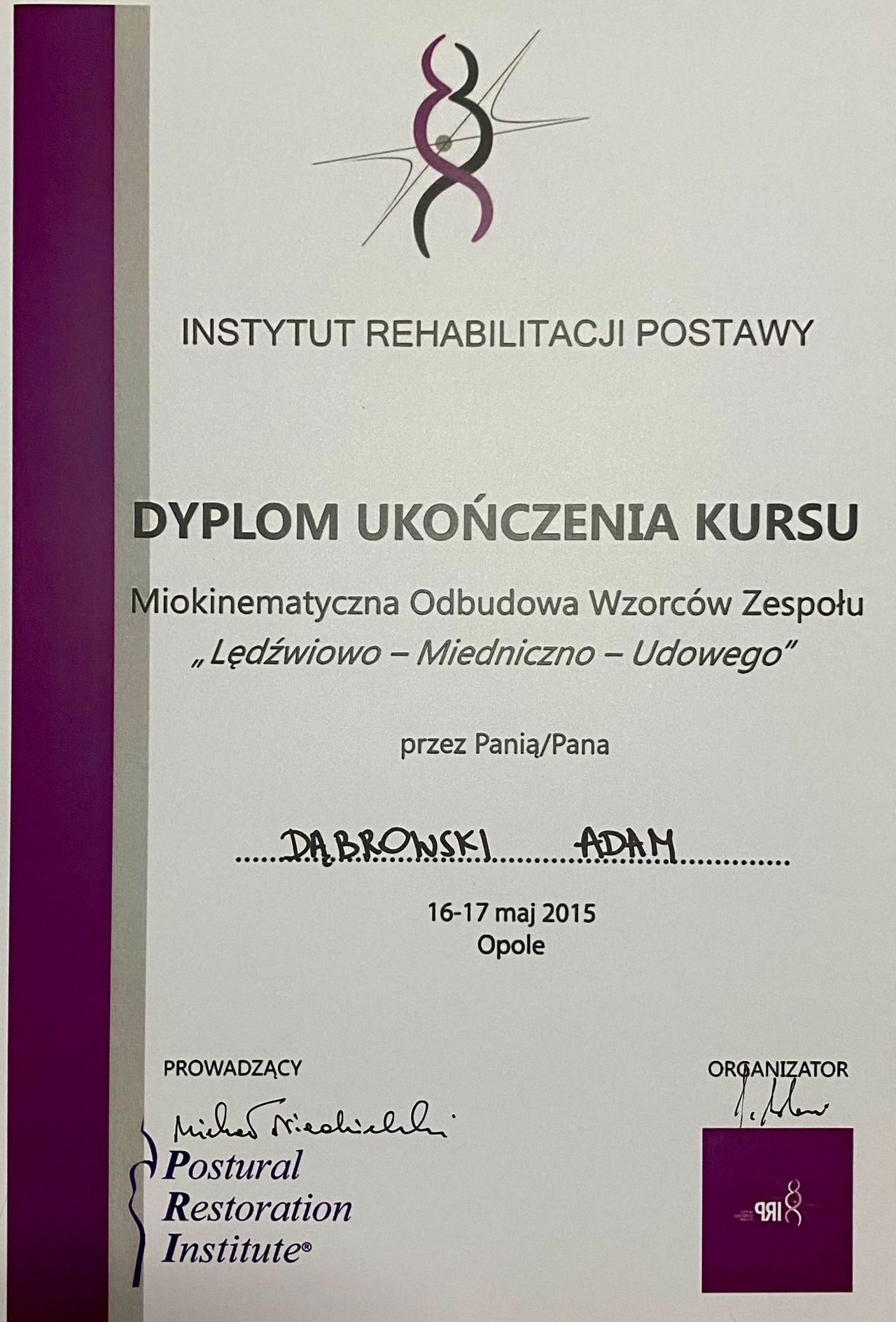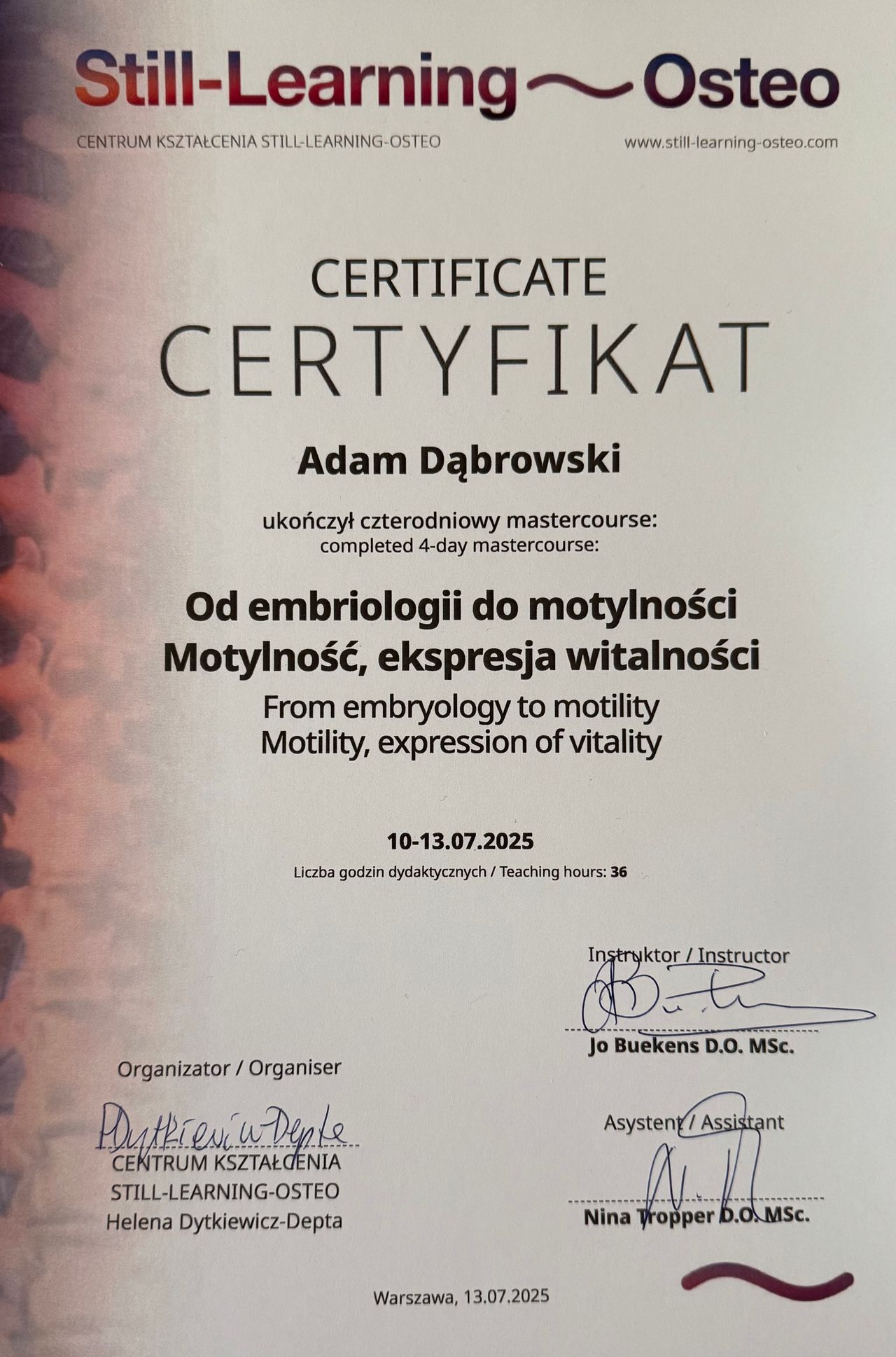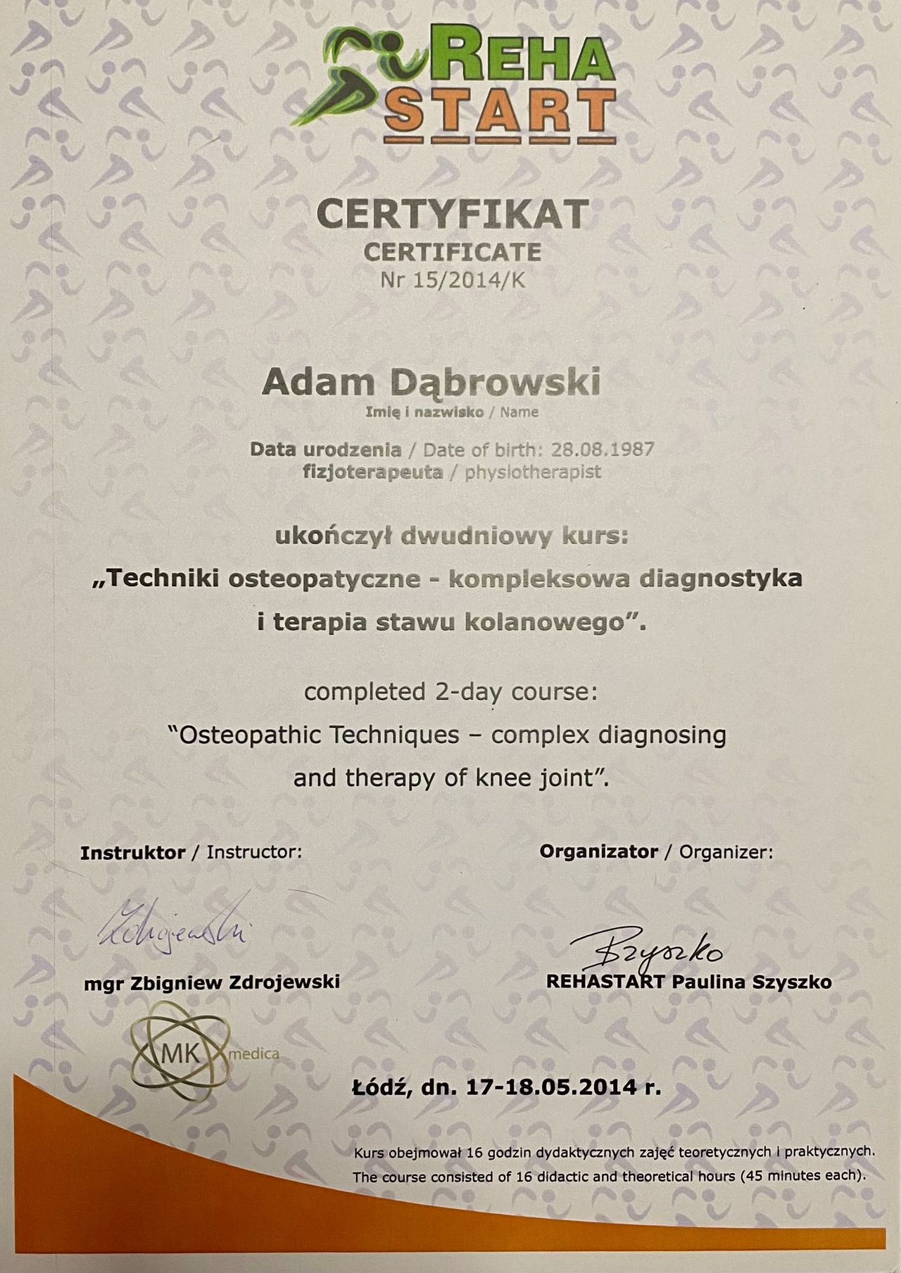 Magister fizjoterapii i dyplomowany osteopata.