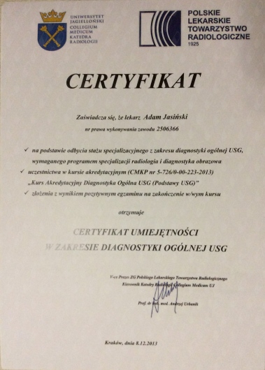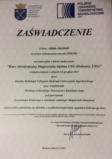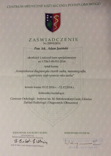 Dr Jasiński posiada duże doświadczenie w radiologii onkologicznej, szczególnie zainteresowany jest chorobami sutka.