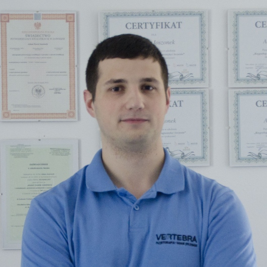Jestem dyplomowanym fizjoterapeutą - tytuł magistra uzyskałem na Akademii Wychowania Fizycznego im. Jerzego Kukuczki w Katowicach. Już w czasie trwania studiów, byłem uczestnikiem licznych kursów z zakresu eliminacji dolegliwości bólowych oraz całościowego podejścia do pacjenta a także konferencji naukowych.