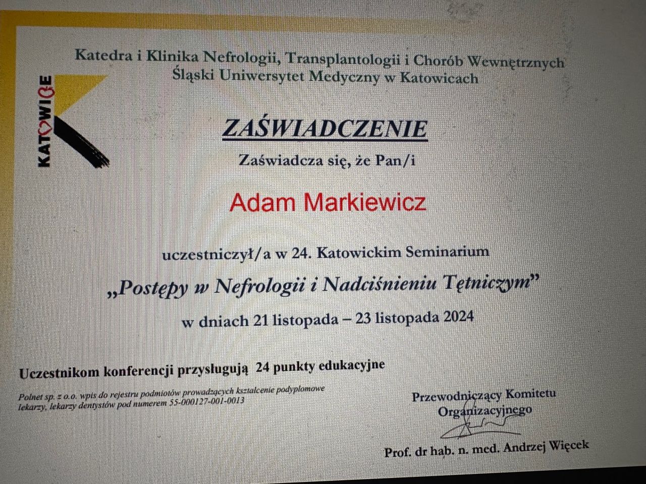 Specjalista chorób wewnętrznych, nefrologii i diabetologii. Posiada wieloletnie doświadczenie kliniczne, obejmujące pracę w charakterze ordynatora. Szczególnie interesuje się leczeniem schorzeń nerek i leczeniem cukrzycy u osób w wieku podeszłym . Możliwość wykupienia 12 -sto miesięcznego abonamentu - uprawniającego do korzystania z porad bez ograniczeń oraz w razie potrzeby kontaktu telefonicznego (koszt 500 zł za 12 mcy). Roczny abonament NIE obowiązuje w placówce Polmed, przy ulicy Lubicz 23 A oraz w placówkach LUX-MED. Tu każdorazowo trzeba zapłacić wg stawek tych Firm.