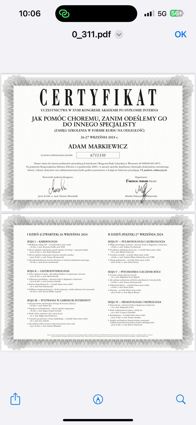 Czy Adam Markiewicz przyjmuje online, bez konieczności pojawiania się w placówce?Tak, Adam Markiewicz oferuje konsultacje online. Wybierz opcję „konsultacja online” przy umawianiu wizyty, a zobaczysz dostępne terminy.