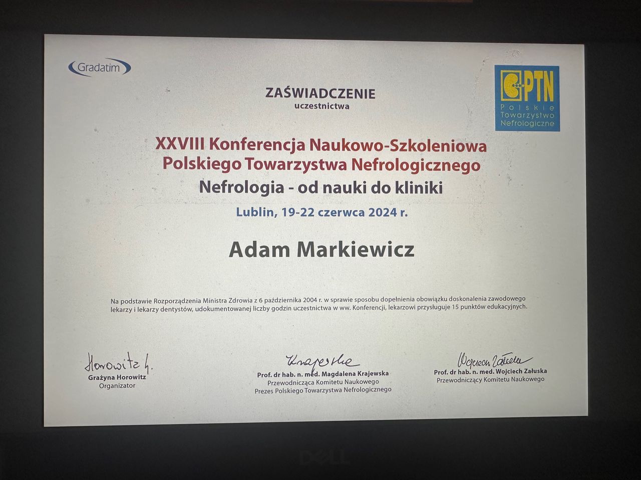 Jako nefrolog – uzyskuje pozytywną opinię: ocena 4,5/5,