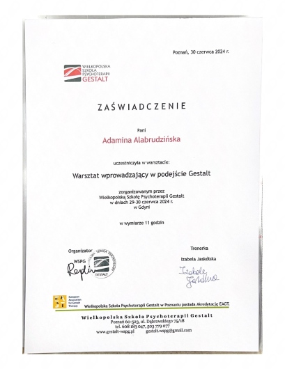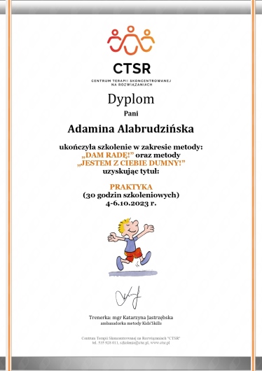 Dziękujemy za wspaniałą wizytę, pani Adamina jest wyrozumiała, cierpliwa, kompetentna i świetna w tym, co robi. Córka na pewno jeszcze tam wróci.