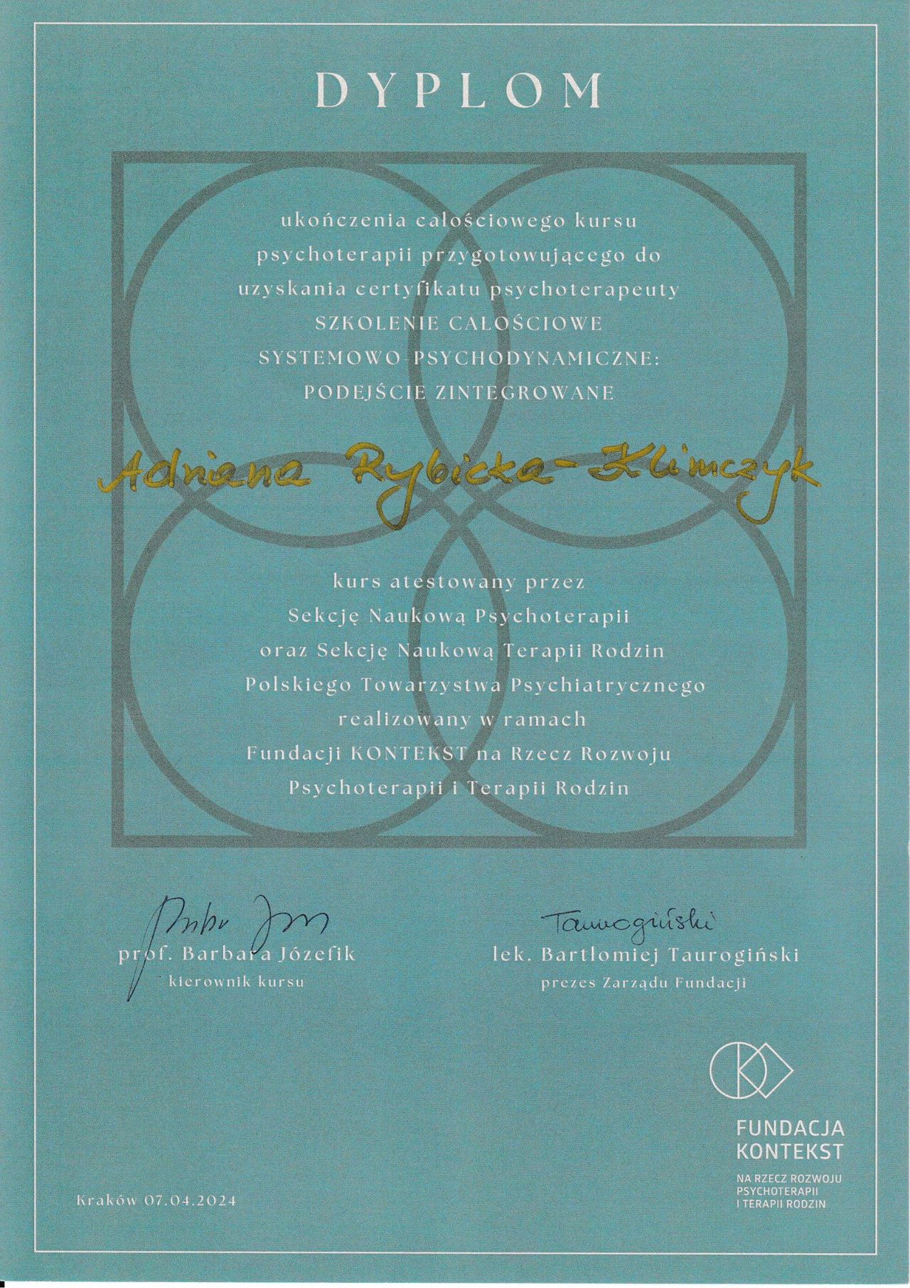 Jaki jest zakres porad oferowanych przez Adriana Rybicka Klimczyk?Adriana Rybicka Klimczyk to psycholog, psychoterapeuta. Na podstawie swojego doświadczenia i wykształcenia Adriana Rybicka Klimczyk oferuje usługi takie jak: konsultacja psychoterapeutyczna, psychoterapia młodzieży, poradnictwo dla rodziców, psychoterapia indywidualna, konsultacja psychoterapeutyczna (pierwsza wizyta), psychoedukacja, psychoterapia dzieci, badania diagnostyczne, Konsultacja psychologiczna, konsultacja online.