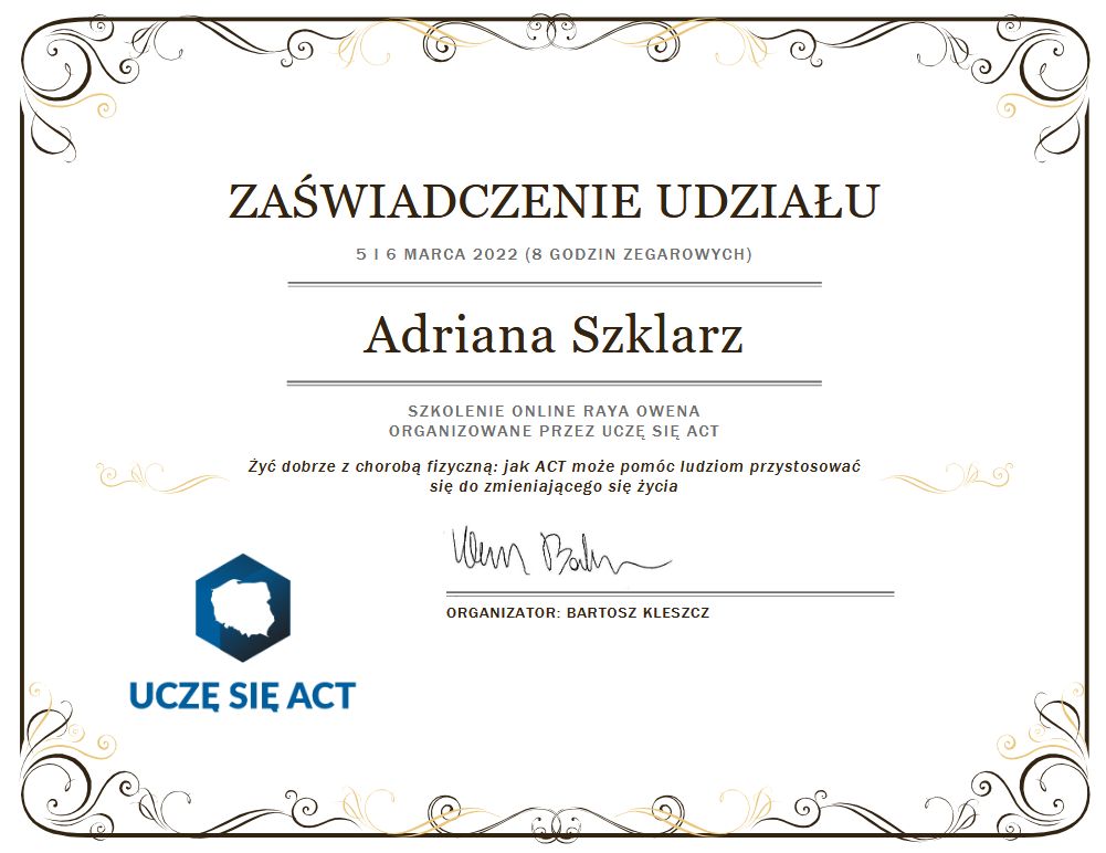 Jesteś już po wizycie u mgr Adriana Szklarz? Daj znać, co myślisz. Inni pacjenci będą wdzięczni za pomoc w wyborze najlepszego specjalisty.