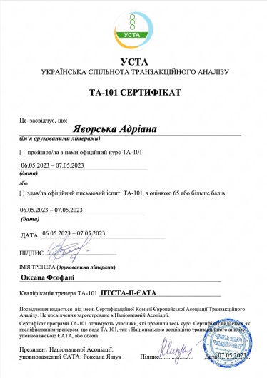 Хотела бы отметить, что Пани Адриана очень эмпатичный специалист. Видно, что она любит свою работу и ее действительно беспокоят мои проблемы и радуют успехи