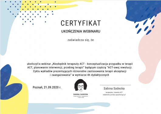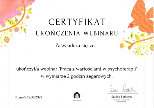 Bierze aktywny udział w szkoleniach, kursach pogłębiających wiedzę na temat „Jak zwiększyć poczucie wartości oraz elastyczność psychologiczną”.