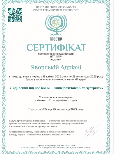 Prowadzi sesje psychologiczne w języku ukraińskim, rosyjskim i polskim.