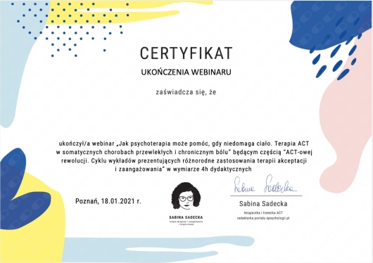 Nurt: Integracyjny (łączy psychologię analityczną z nurtem poznawczo-behawioralny III fali ACT, z arteterapią oraz wiedzą o psychosomatyce).