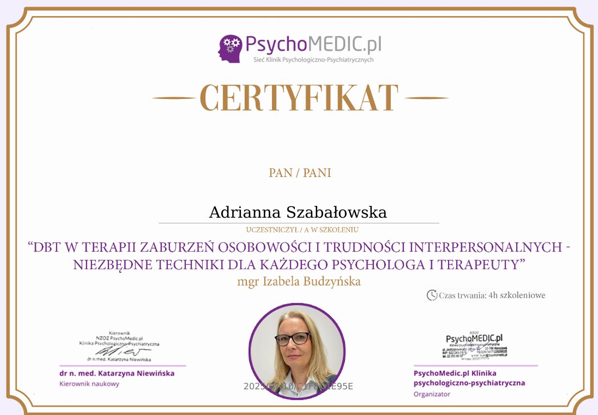 Gdzie Adrianna Szabałowska ma swój gabinet?Adrianna Szabałowska przyjmuje pod adresem: