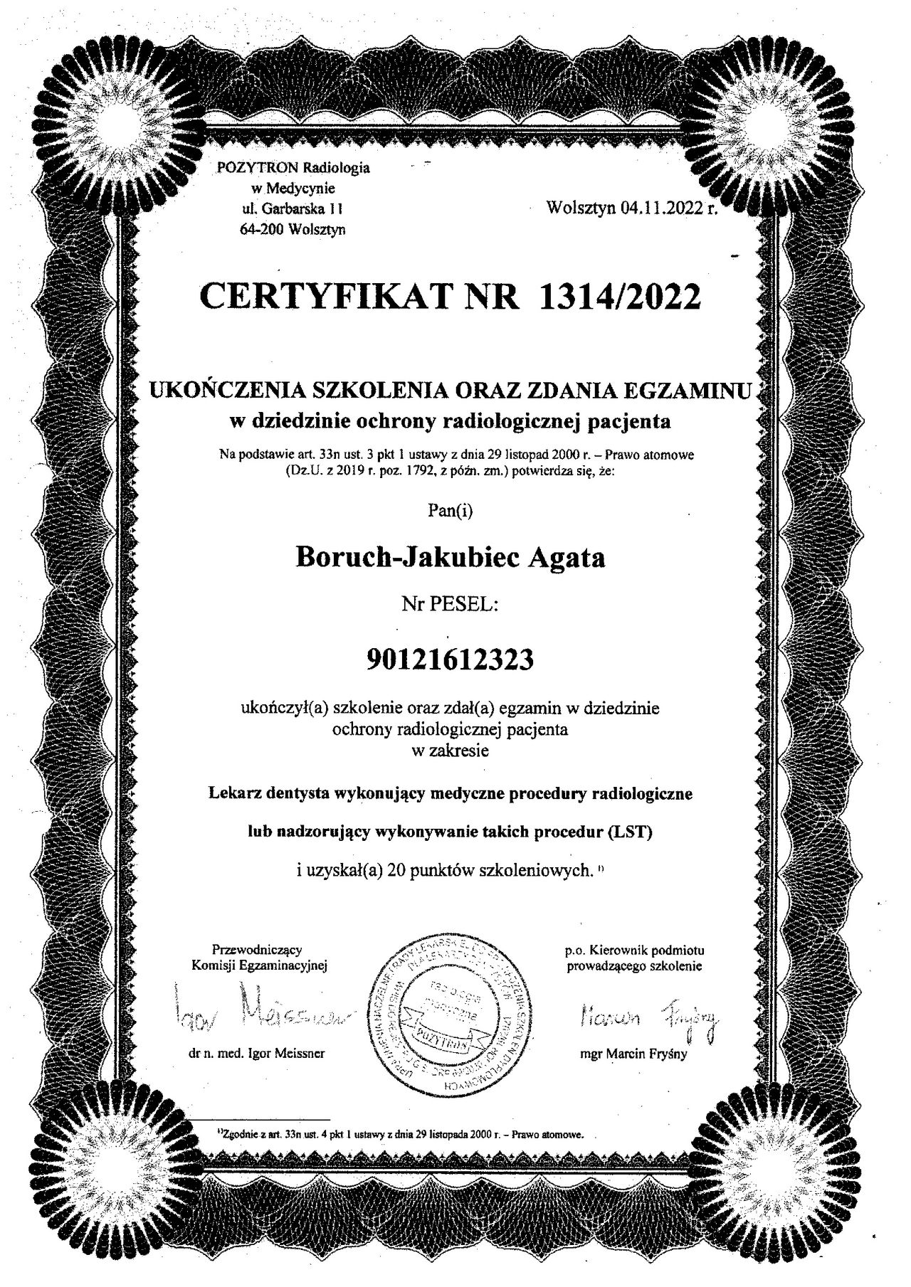Administratorem danych osobowych jest ZnanyLekarz sp. z o.o. z siedzibą w Warszawie przy ul. Kolejowej 5/7. Informujemy, że po przekazaniu przez nas Twoich danych osobowych wybranemu przez Ciebie Profesjonaliście, staje się on również administratorem Twoich danych osobowych i przetwarza je w celach związanych ze świadczeniem usług medycznych lub innych podobnych.
