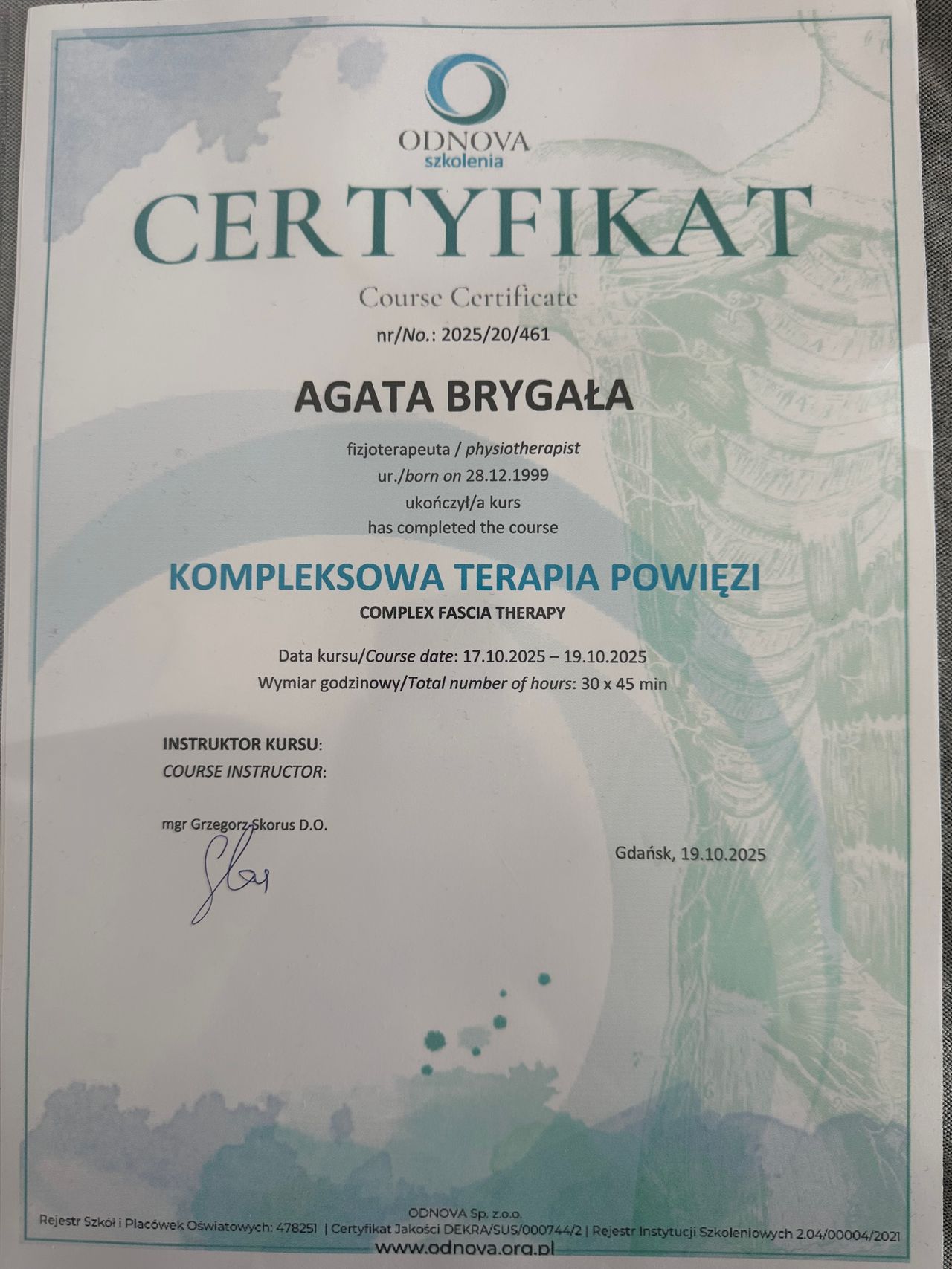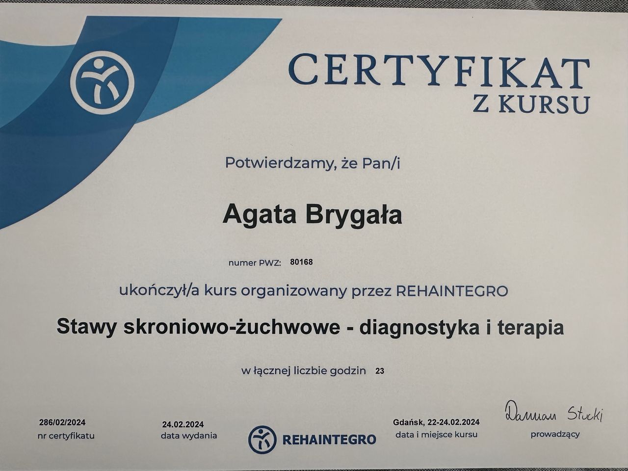 Mam doświadczenie ze sportem i Pani Agata wielokrotnie pomogła mi przy kontuzjach barku, kostki czy ścięgna Achillesa – zawsze skutecznie! Od pierwszej wizyty doceniam jej profesjonalizm, indywidualne podejście i trafne diagnozy.