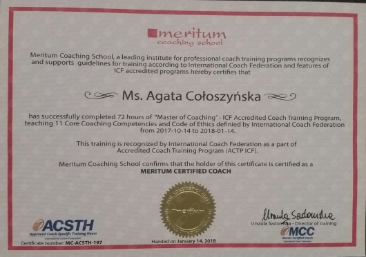 Pani Agata była dla mnie dużym wsparciem, w sytuacji w jakiej się znalazłam. Pomogła mi zrozumieć oraz spojrzeć na wiele spraw z innej perspektywy. Spotkania z Panią Agatą były dla mnie niezwykle rozwijające. Zdecydowanie polecam.