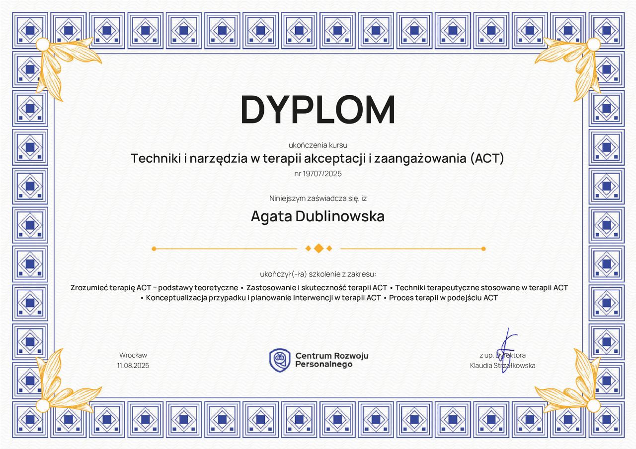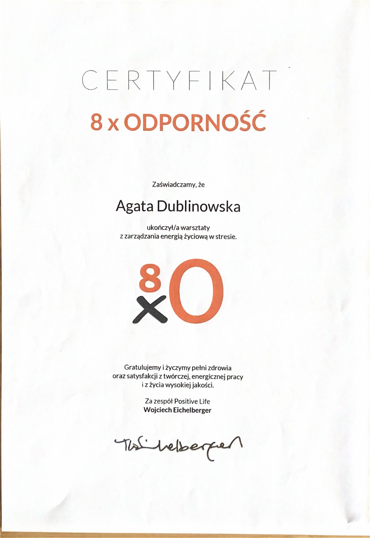 Pani Agata to niezwykle empatyczna osoba, ktoś pomoże osobom będącym na rozdrożu, borykającym się z dylematami i problemami zawodowymi oraz rodzinnymi. Podchodzi do człowieka ze zrozumieniem i potrafi słuchać, nie oceniając.