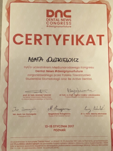 Pani Agata skrupulatnie odpowiedziała na moje pytania, zaproponowała w jaki sposób odbędzie się dalsze leczenie w najbliższym czasie, czuję się dobrze poinformowana o sytuacji i stanie moich zębów, czuję że współpraca będzie przyjemna :)