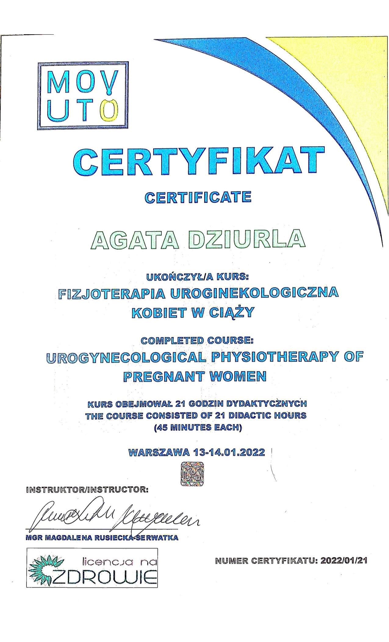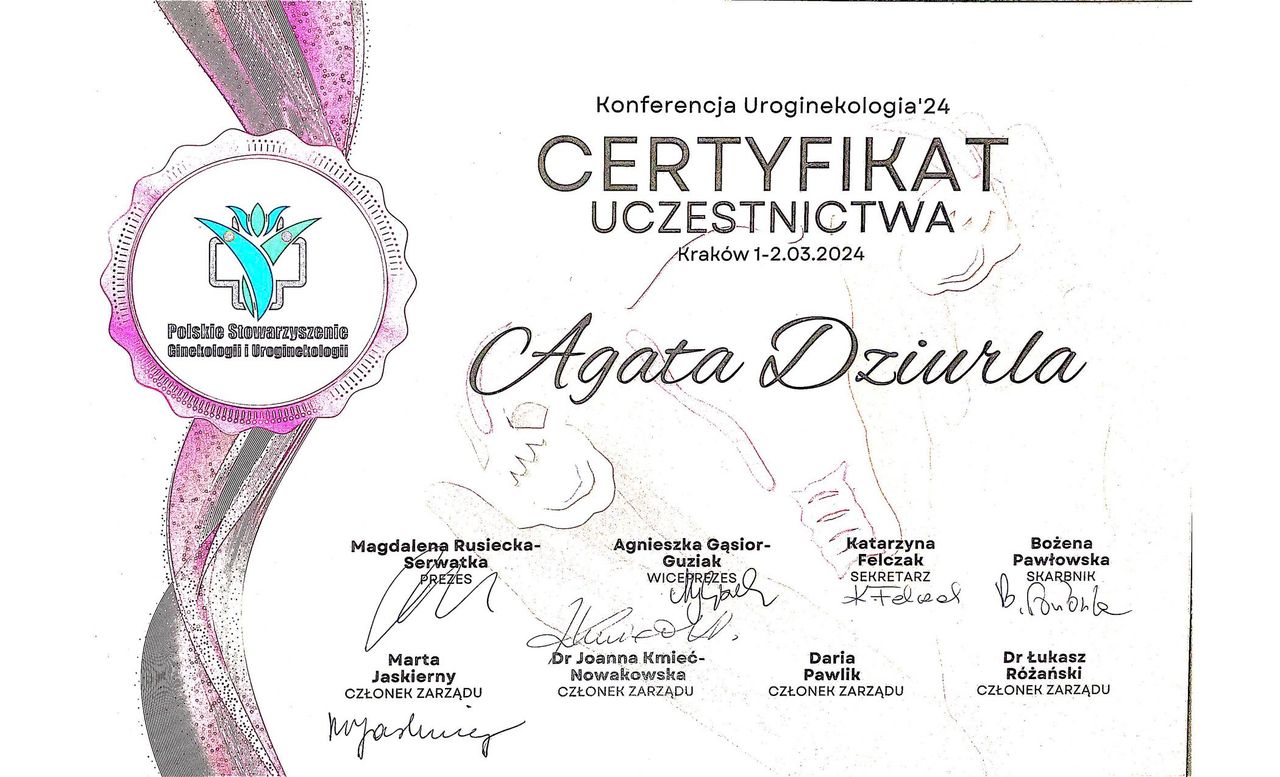Stale poszerzam swoją wiedzę, uczestnicząc w szkoleniach, konferencjach z zakresu fizjoterapii uroginekologicznej, a także jestem studentką Akademii Osteopatii.