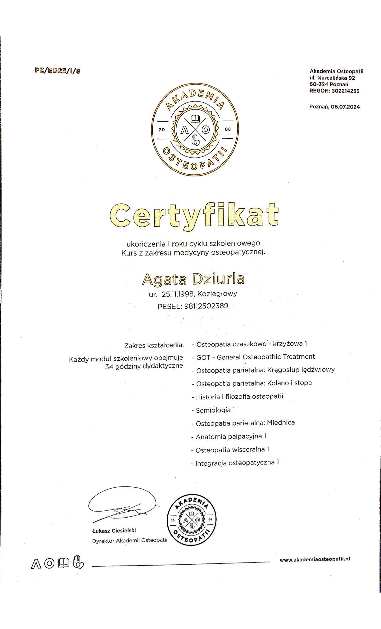 Gdzie Agata Dziurla ma swój gabinet?Agata Dziurla przyjmuje pod adresem: