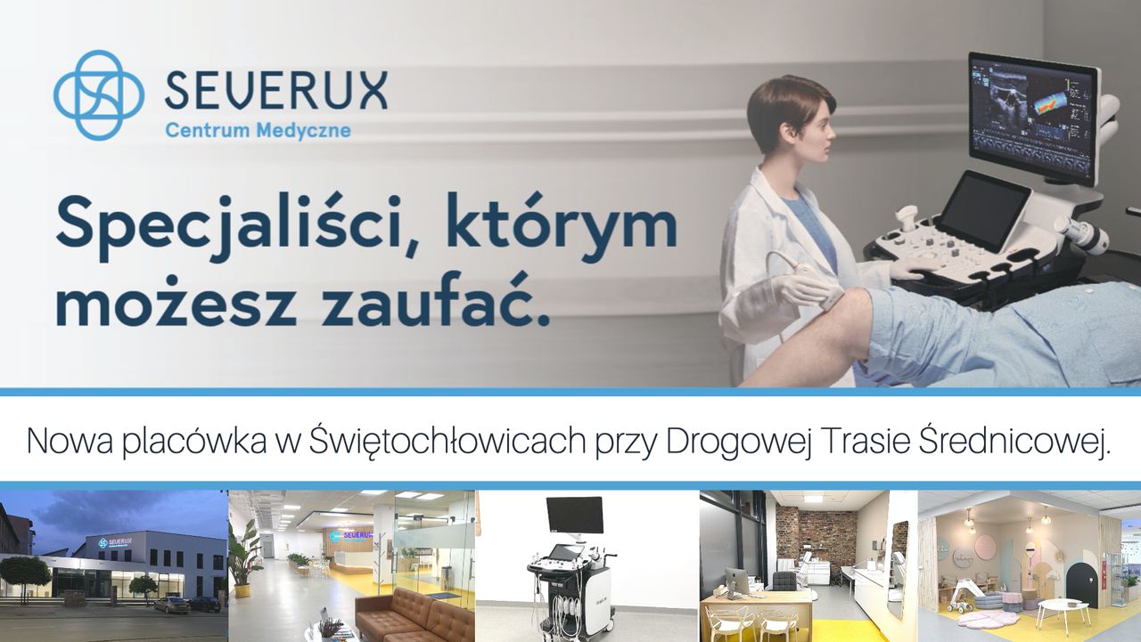 Centrum Medyczne Severux działa w ramach dwóch placówek zlokalizowanych w Chorzowie (ul. Katowicka 157) oraz w nowej placówce w Świętochłowicach (ul. Sikorskiego 1), znajdującej się bezpośrednio przy zjeździe z Drogowej Trasy Średnicowej. Zespół naszych specjalistów liczy ponad 100 osób i stale się powiększa. To fantastyczni ludzie - kompetentni i empatyczni, traktujący pacjenta z szacunkiem i troską. Znajdziesz u nas m.in. szybkie terminy konsultacji, aparaturę medyczną najwyższej jakości, umiarkowane ceny, łatwy dojazd i duży osobny parking. Zapraszamy do skorzystania z prywatnych konsultacji w następujących specjalnościach: alergologia, akupunktura, chirurgia naczyniowa i ogólna, dermatologia, diabetologia, dietetyka, endokrynologia, fizjoterapia, ginekologia, hematologia, interna, kardiologia, laryngologia, medycyna estetyczna, medycyna pracy, neurologia, okulistyka, onkologia, optometria, ortodoncja, ortopedia, pediatria, podologia, poradnia leczenia bólu, poradnia leczenia ran przewlekłych, poradnia leczenia stopy cukrzycowej, pracownia USG, psychiatria, psychologia, reumatologia, stomatologia i urologia. W placówce w Świętochłowicach działa też punkt pobrań oraz pracownia radiologii stomatologicznej. Do zobaczenia w CM Severux! : )