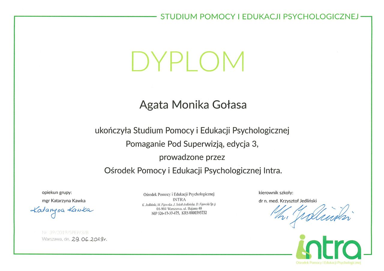Pracuję pod stałą superewizją i regularnie rozwijam swoje kompetencje.