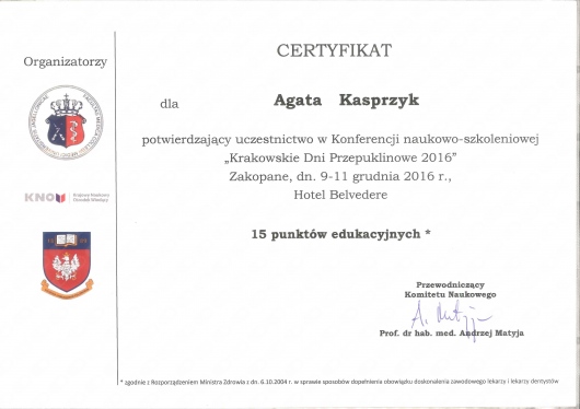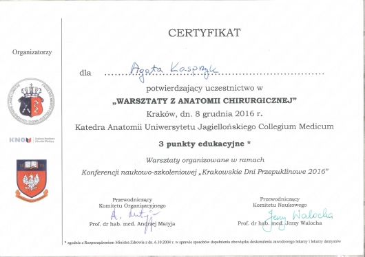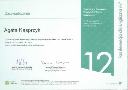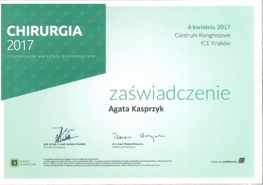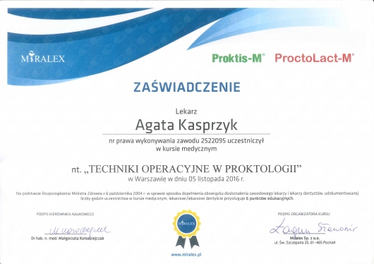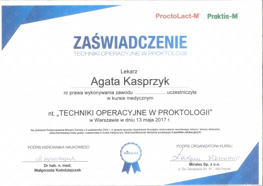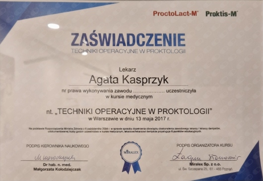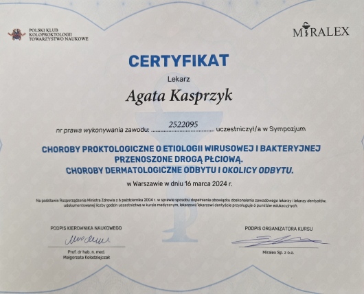 Stale podnosi swoje umiejętności uczestnicząc w stażach, szkoleniach i kongresach z zakresu medycyny estetycznej, chirurgii oraz proktologii zarówno w Polsce jak i za granicą. Wszystko po to aby zagwarantować Państwu bezpieczne leczenie zgodne ze sztuką medyczną oraz aktualnymi trendami.