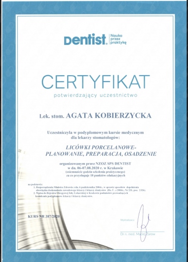 Polecam Dr.Kobierzycką,jest Świetnym specjalistą,z podejściem do pacjenta,dokładna ,delikatna .Polecam tym którzy boją się Stomatologa,bo siedzieć u P.Doktor na fotelu to przyjemność.