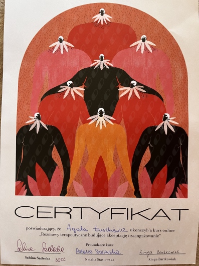 Doświadczenie psychoterapeutyczne zdobywałam na stażu na Oddziale Psychiatrycznym Dziennym przy Szpitalu w Lęborku.