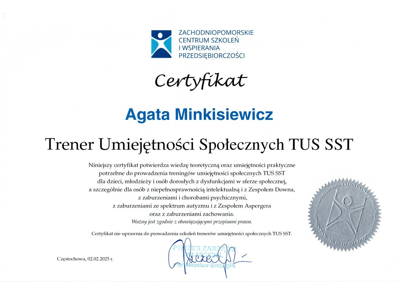 Jaki jest zakres porad oferowanych przez Agata Minkisiewicz?Agata Minkisiewicz to psycholog, psychoterapeuta certyfikowany. Na podstawie swojego doświadczenia i wykształcenia Agata Minkisiewicz oferuje usługi takie jak: Konsultacja psychologiczna, Psychoterapia indywidualna dorosłych, psychoterapia indywidualna, psychoterapia młodzieży, Trening umiejętności społecznych.