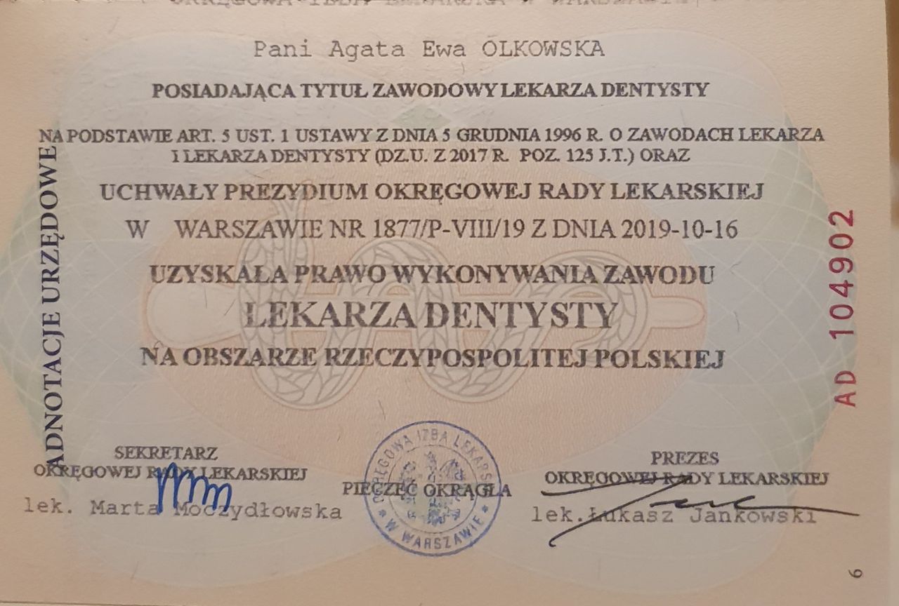 Jaki jest zakres porad oferowanych przez Agata Olkowska?Agata Olkowska to stomatolog, w trakcie specjalizacji (chirurg szczękowo-twarzowy). Na podstawie swojego doświadczenia i wykształcenia Agata Olkowska oferuje usługi takie jak: Konsultacja stomatologiczna, chirurgia szczękowo-twarzowa, chirurgiczne usuwanie zębów, ekstrakcja zatrzymanych ósemek, ekstrakcja zęba, Konsultacja chirurgiczna.