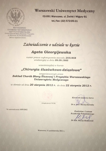 Zgadzam się całkowicie z negatywną opinią innego pacjenta. W czasie konsultacji dla pozbycia się choroby dziąsła sugerowano mi usunięcie zdrowego zęba ( mam opinię innego lekarza). Na mały zabieg higieniczny czekałam z bólem 3 tygodnie i nie powiódł się. Po nim zalecono mi tylko wizytę kontrolną po paru miesiącach. Oczywiście nie wytrzymam z bólem tak długo i zgłoszę się po pomoc do innego lekarza.