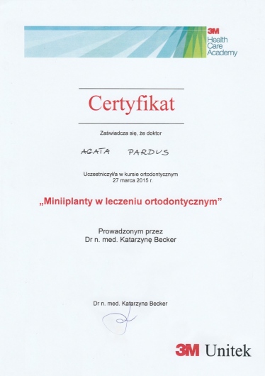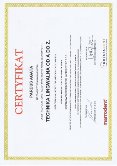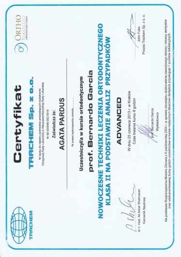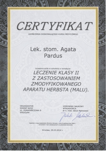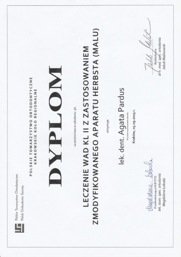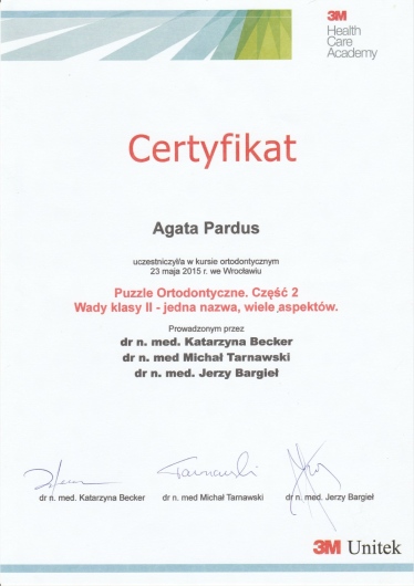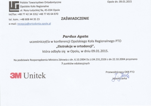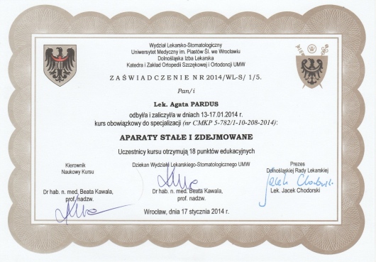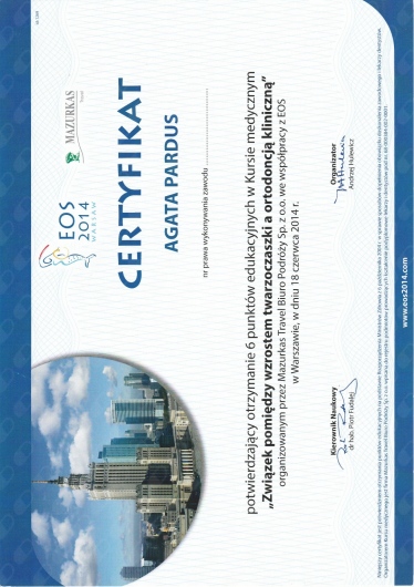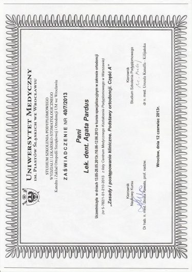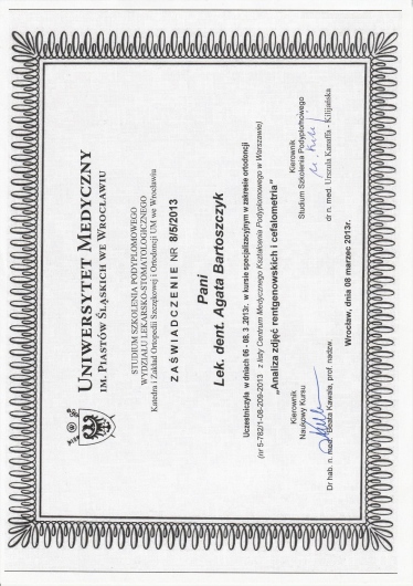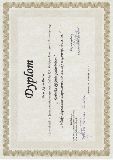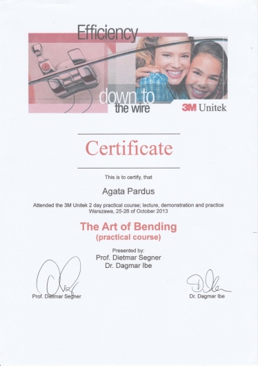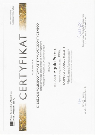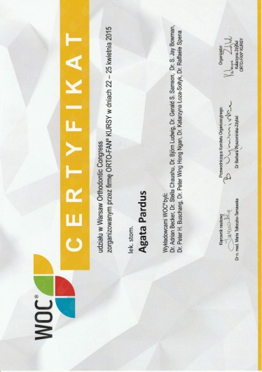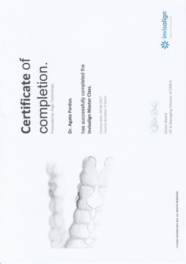 Ortodoncja to moja pasja dlatego też pomimo pełnych kwalifikacji i kompetencji do wykonywania swojego zawodu wciąż pogłębiam swoją wiedzę uczestnicząc w licznych konferencjach i szkoleniach prowadzonych przez wybitnych specjalistów polskich i zagranicznych.