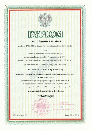 Najważniejsze jest doświadczenie, wiedza i umiejętności lekarza prowadzącego, dlatego polecam dr Agatę Pardus, której można zaufać w 100%. Dr Agata z uwagą i troską podchodzi do każdego pacjenta. Moim zdaniem jest najlepszym lekarzem ortodontą w Polsce.
