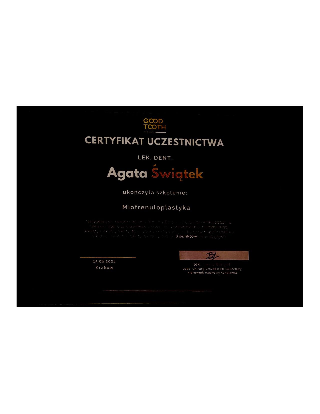 - Odbyłam kurs z horyzontalnej regeneracji kości prowadzonym przez Soft Tissue Institut.
