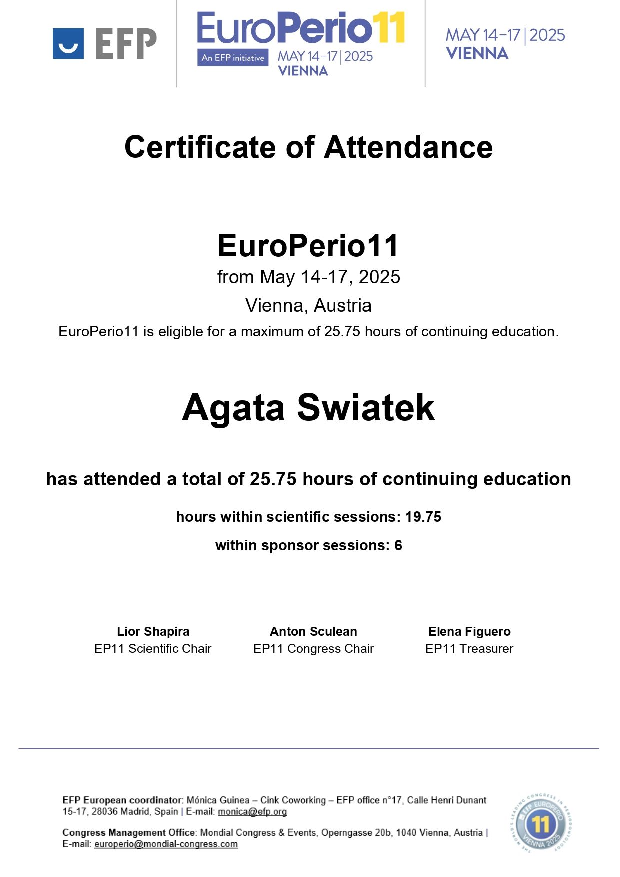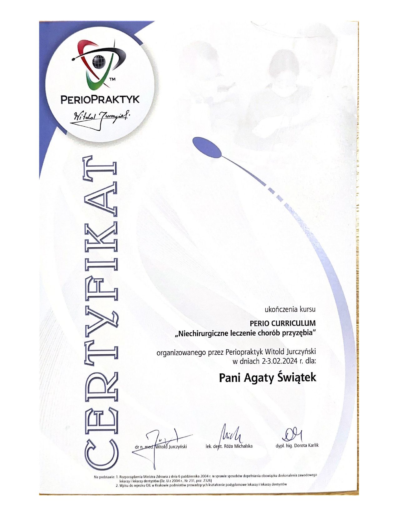 - Uczestniczyłam w Konferencji Periodontologicznej w 2024 roku organizowanej przez Polskie Towarzystwo Periodontologiczne