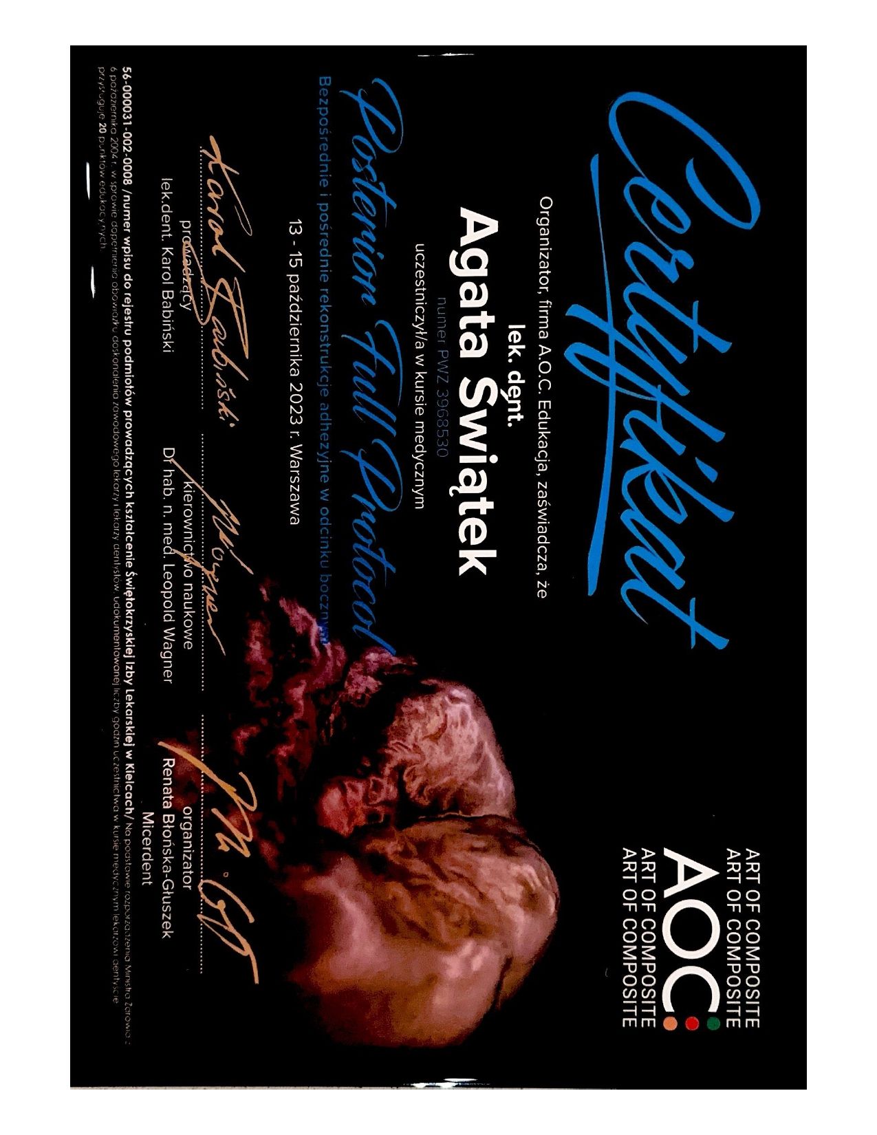 - Kurs z estetycznej i funkcjonalnej odbudowy zębów w odcinku bocznym łuków zębowych (posterior full protocol)