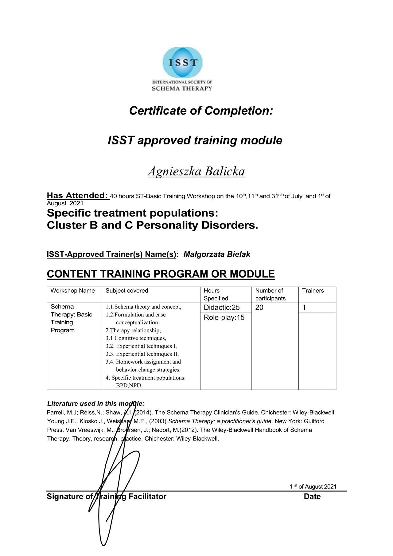 Terapia u Pani Agnieszki bardzo pomogła mi w trudnym momencie mojego życia. Przywróciła mi wiarę w sprawczość moich działań, dodała siły do walki z przeciwnościami. Bardzo zaangażowana w swojego pacjenta, pełna empatii z dużym doświadczeniem to najlepsza specjalistka na jaką trafiłam do tej pory.