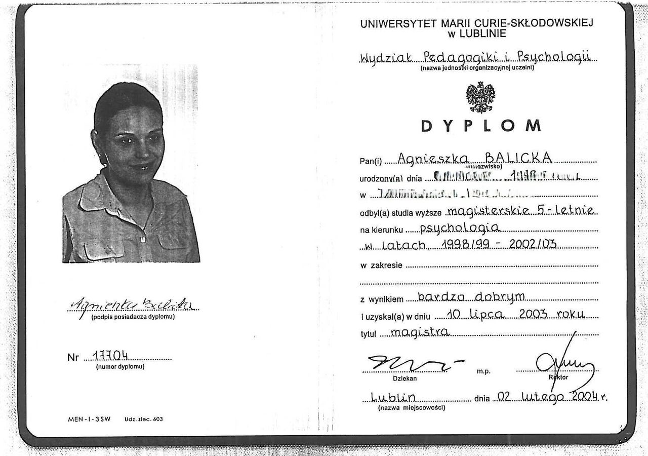Korzystałam z pomocy Pani Agnieszki przez lata. Po raz pierwszy udałam się na wizytę jako zlękniona, niepewna siebie nastolatka, a terapię zakończyłam jako dorosła, świadoma swoich potrzeb i tego jak radzić sobie z lękiem, emocjami i zwyczajnie- życiem, kobieta. Od pierwszej wizyty poczułam, że znika we mnie napięcie i zaczynam proces zdrowienia- wchodzenia w tematy, które są bolesne i powolne uzdrawianie. Pani Agnieszka jest wspaniałą osobą, a cechą którą cenię w niej najbardziej jest to, że niesamowicie wierzy w swojego pacjenta, co finalnie skutkuje tym że pacjent zaczyna wierzyć w siebie. Jej dobro, empatia, pozytywna energia, to wszystko jest dla mnie oczywiste. Bez Pani Agnieszki nie byłabym osobą którą teraz jestem i będę jej za to zawsze wdzięczna.