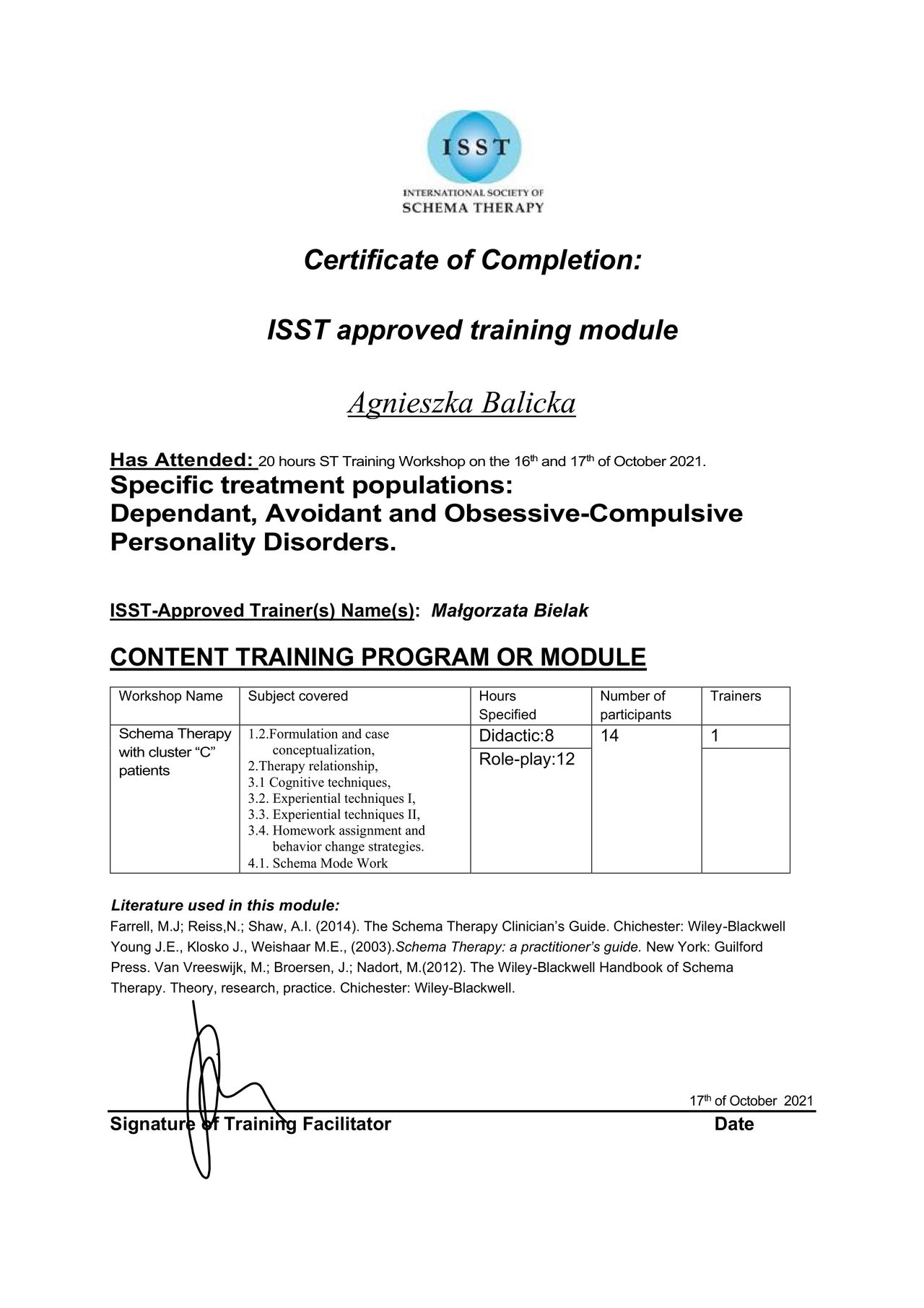 Trafiłam do Pani Agnieszki 3 lata temu. Jestem bardzo zadowolona z naszych spotkań. Dzięki nim dojrzałam, pozbyłam się wielu problemów i dostrzegłam swoją sprawczość i siłę. Najlepszymi wynikami terapii są zmiany w życiu i postrzeganiu świata, oraz poprawa komfortu życiowego, a tu są one dostrzegalne gołym okiem. Bardzo się cieszę że zupełnie przypadkiem wybrałam właśnie tą terapeutkę. To było "zrządzenie losu"!