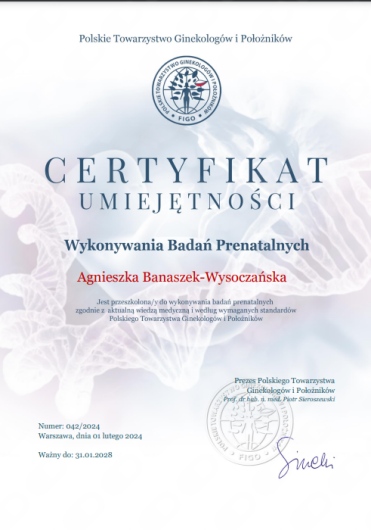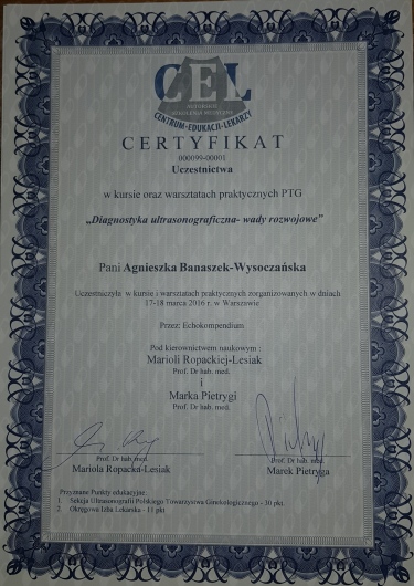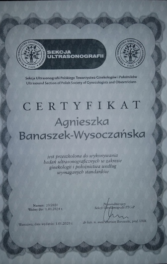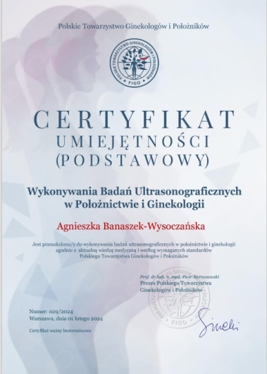 • Certyfikat Sekcji Ultrasonografii Polskiego Towarzystwa Ginekologicznego (PTG)