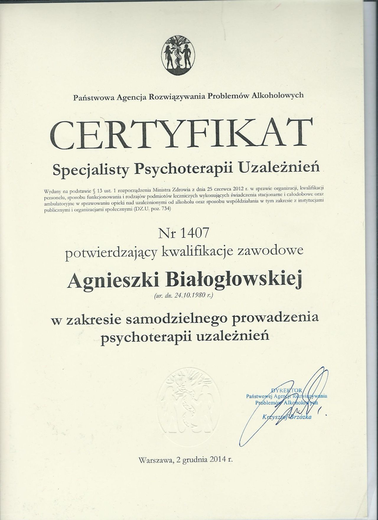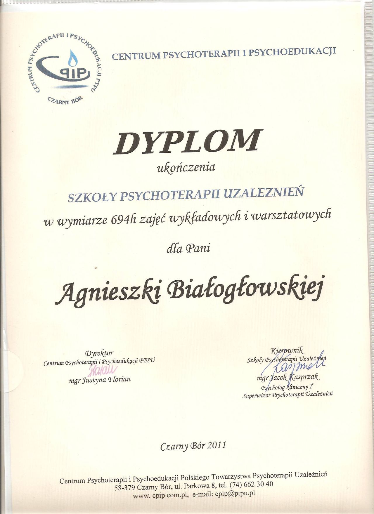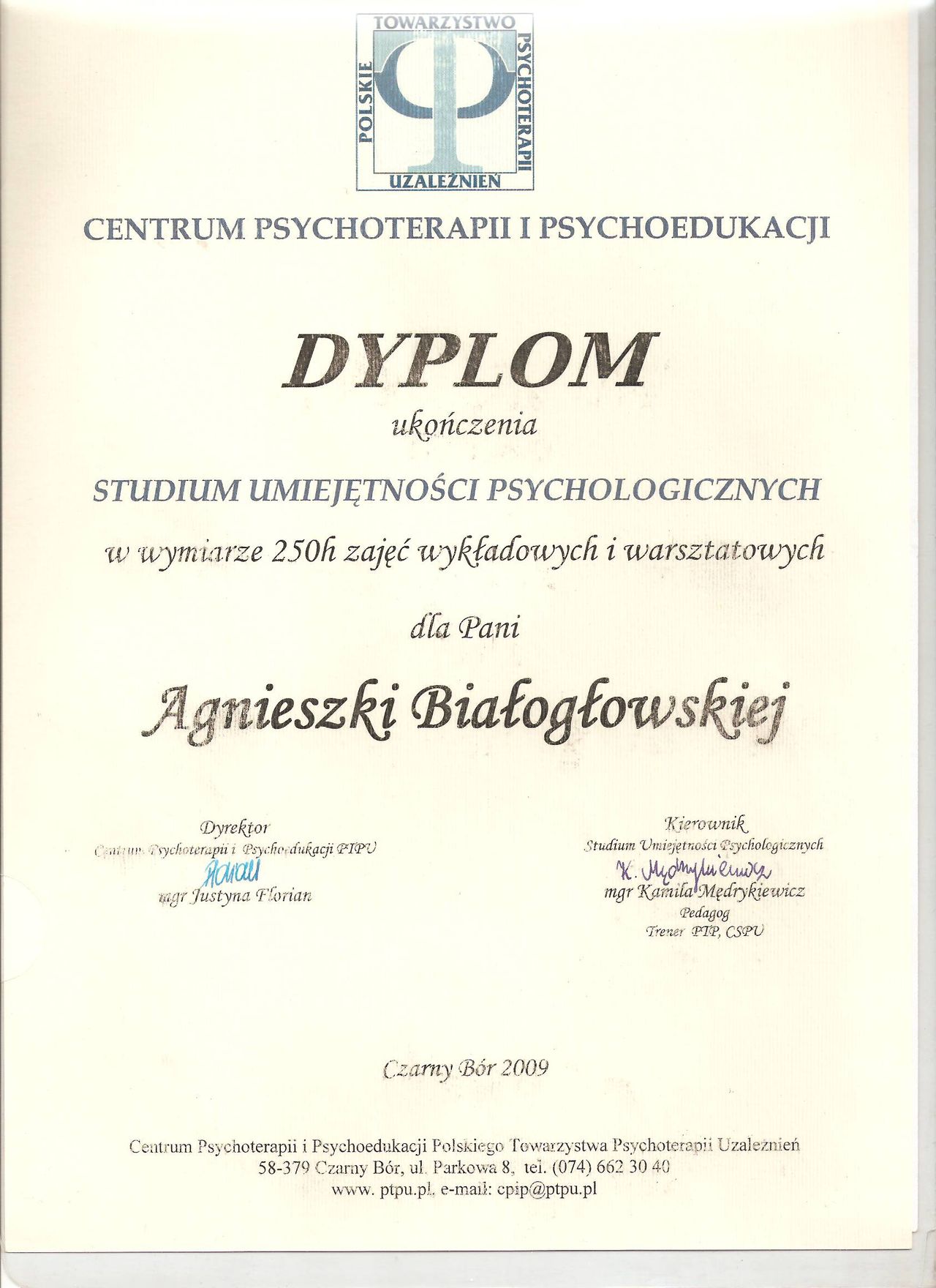 Uczestniczę w Całościowym Szkoleniu Psychoterapii Ericksonowskiej, stale rozwijając swoje umiejętności psychoterapeutyczne. Ukończyłam liczne szkolenia i konferencje z zakresu przeciwdziałania przemocy, pracy z dzieckiem i osobą dorosłą, wsparcia osób z rodzin dysfunkcyjnych (DDA), współuzależnienia, a także dwuletnią szkołę z zakresu seksuologii. Pracuję również metodą EMDR.