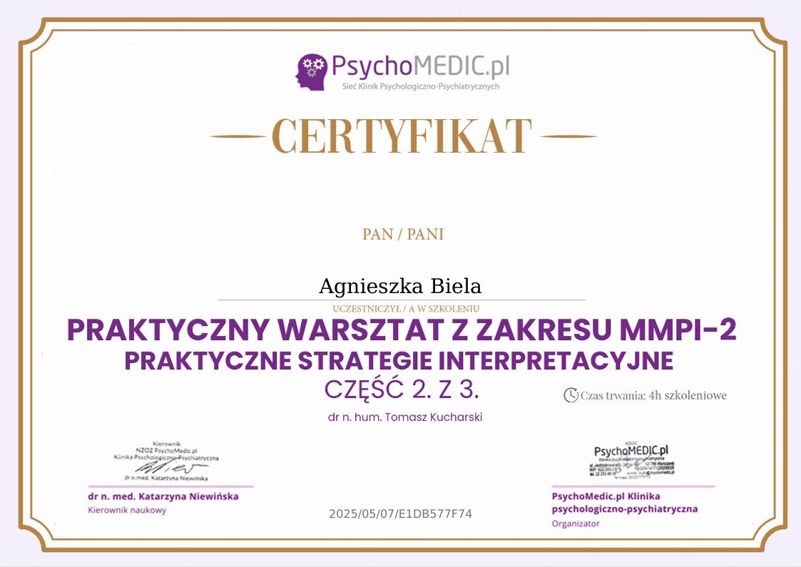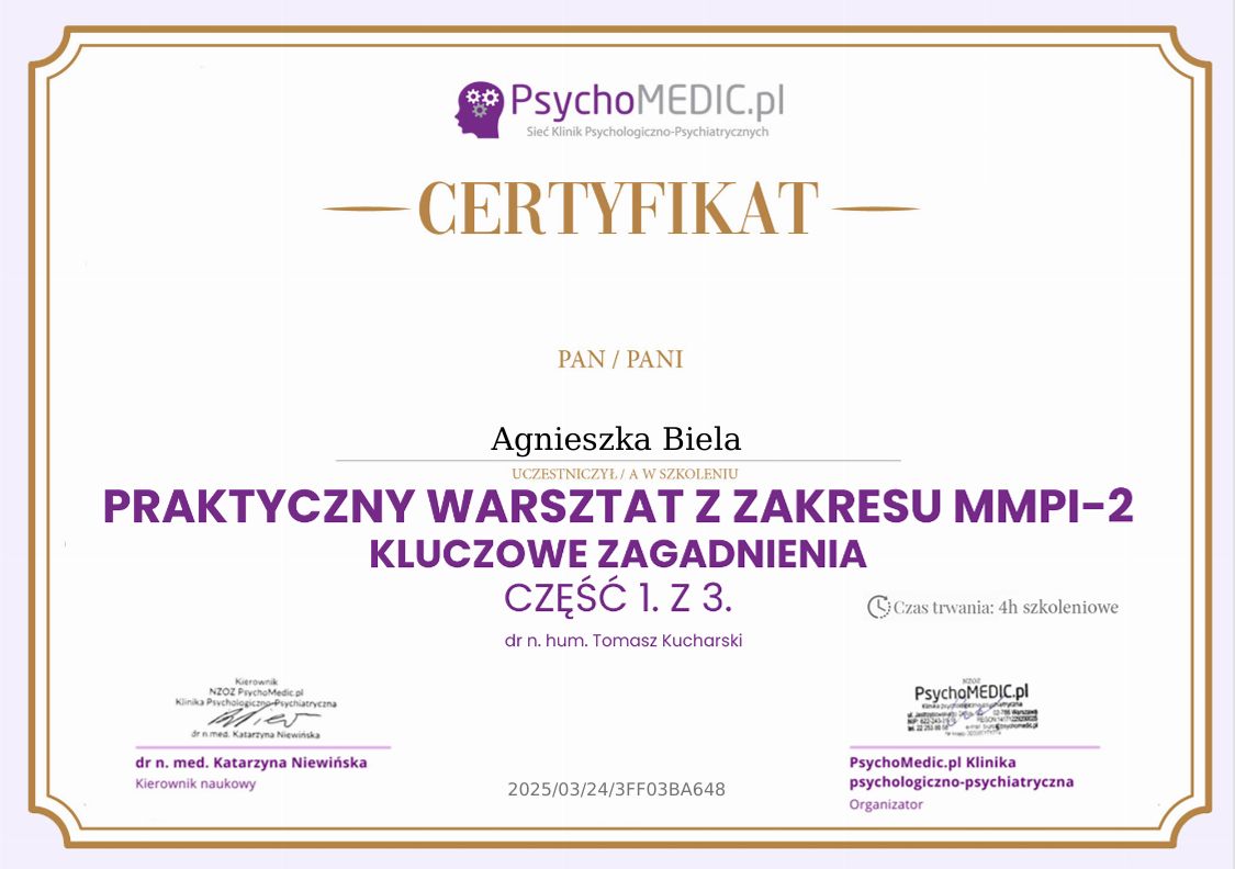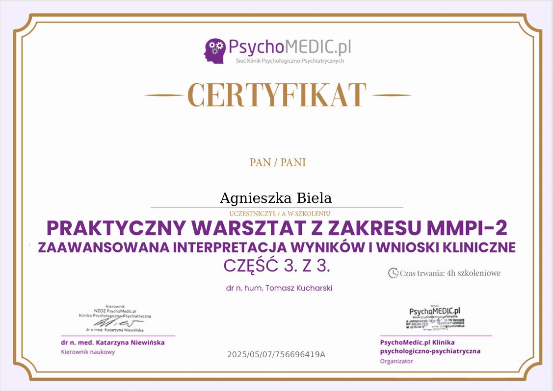 Przeprowadzam testy osobowości za pomocą kwestionariusza MMPI. Wykonuję także testy DIVA-5 i SCID-5. Wystawiam opinie psychologiczne.