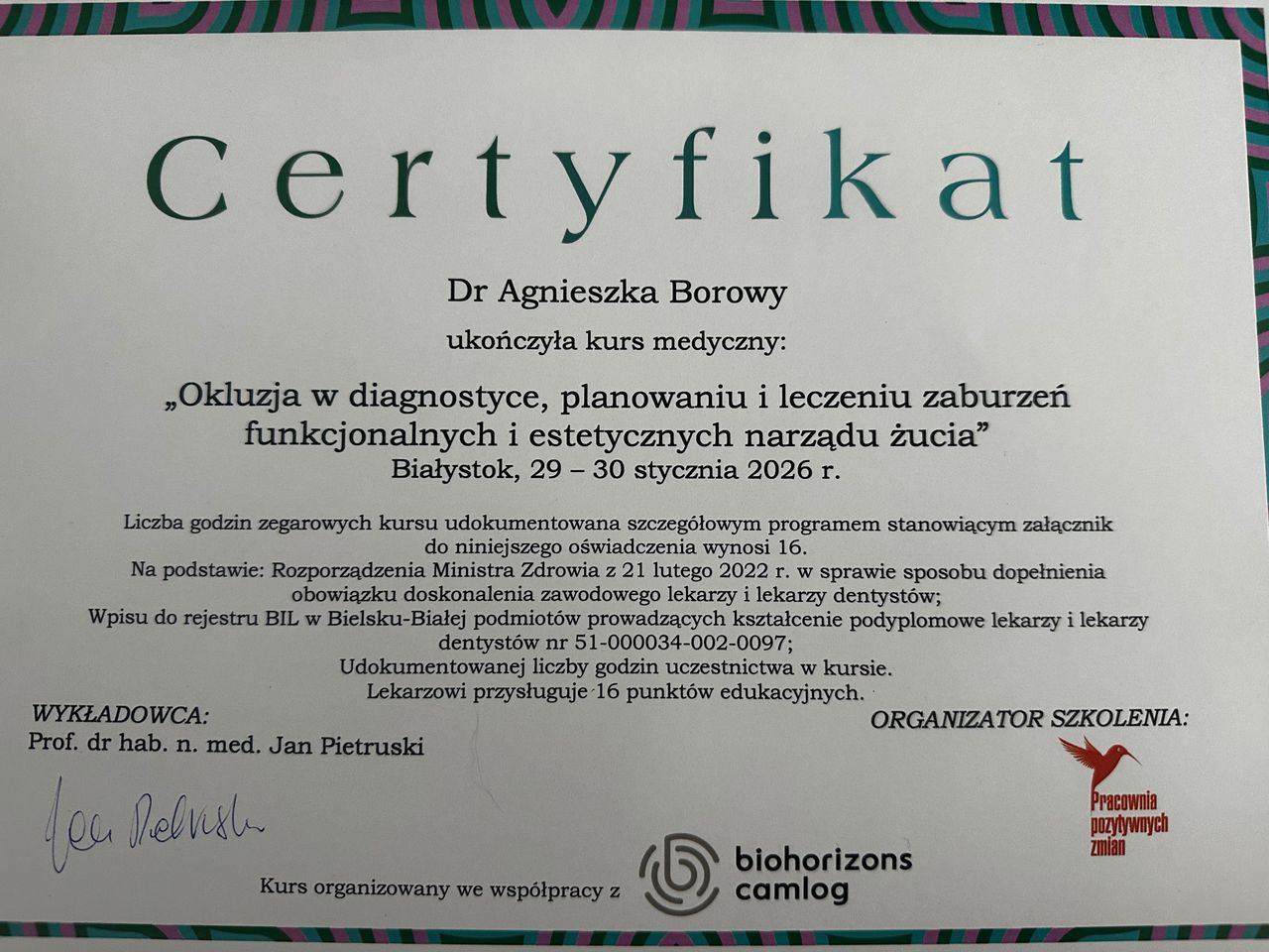Staż podyplomowy odbyłam w Białymstoku, gdzie zdobywałam cenne doświadczenie w pracy z pacjentami.