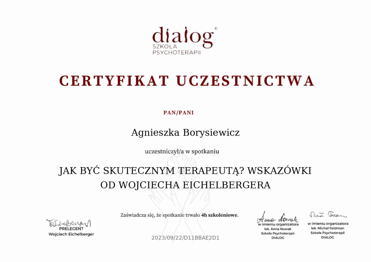 Pani Agnieszka to niezwykle miła i empatyczną osoba, która z ogromnym szacunkiem i wsparciem słucha drugiej osoby.