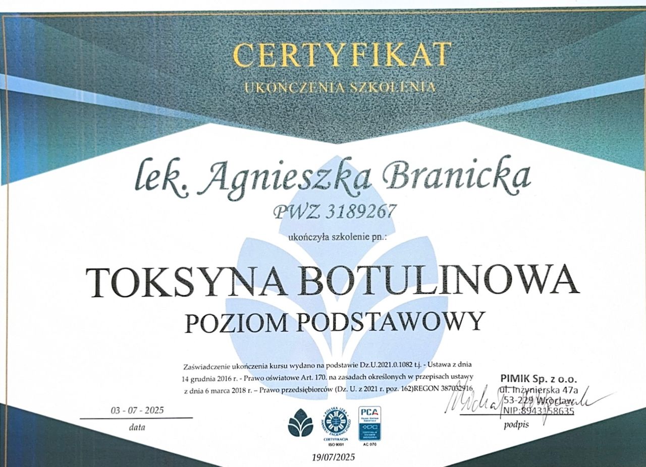 Jestem po pierwszej wizycie u dr Branickiej i na pewno nie ostatniej. Bardzo miła atmosfera, zero stresu, a efekty widać naprawdę szybko – skóra jest bardziej jędrna i promienna.