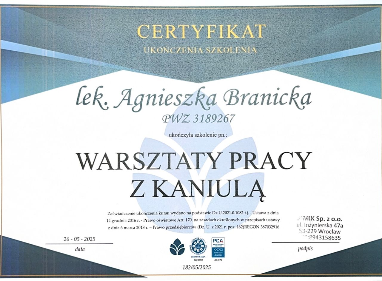 Dr Branicka jest bardzo profesjonalna. Wykonała zabieg bardzo sprawnie bez żadnych problemów. Poza tym doktor jest bardzo sympatyczna. Bardzo polecam!