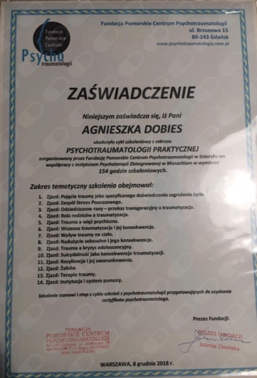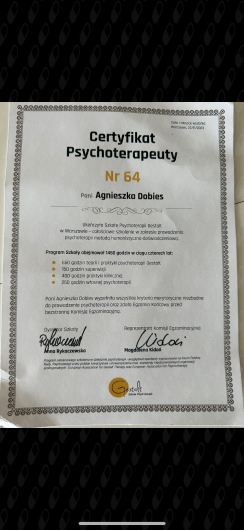 Agnieszka Dobies, certyfikowany psychoterapeuta