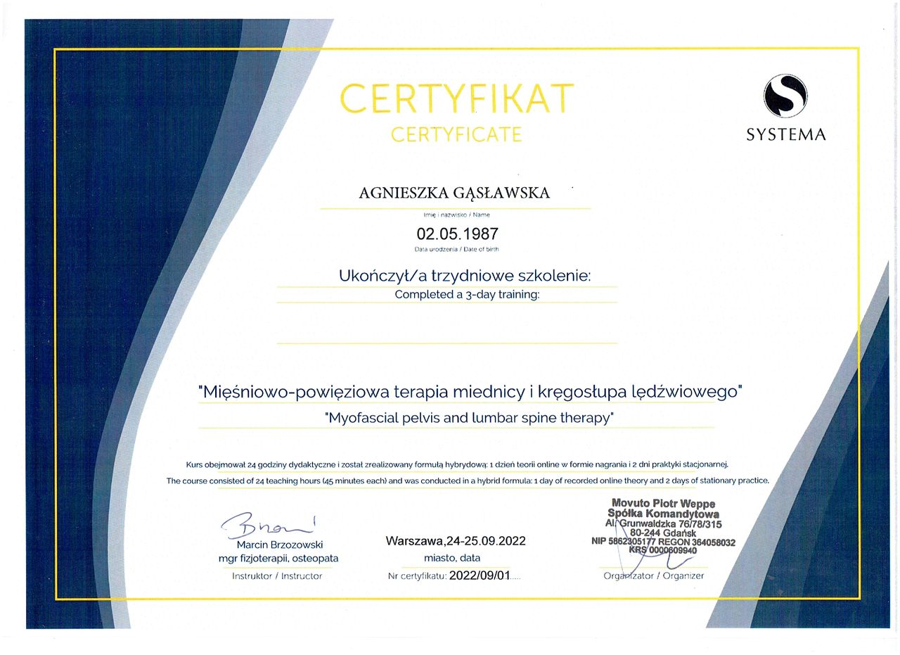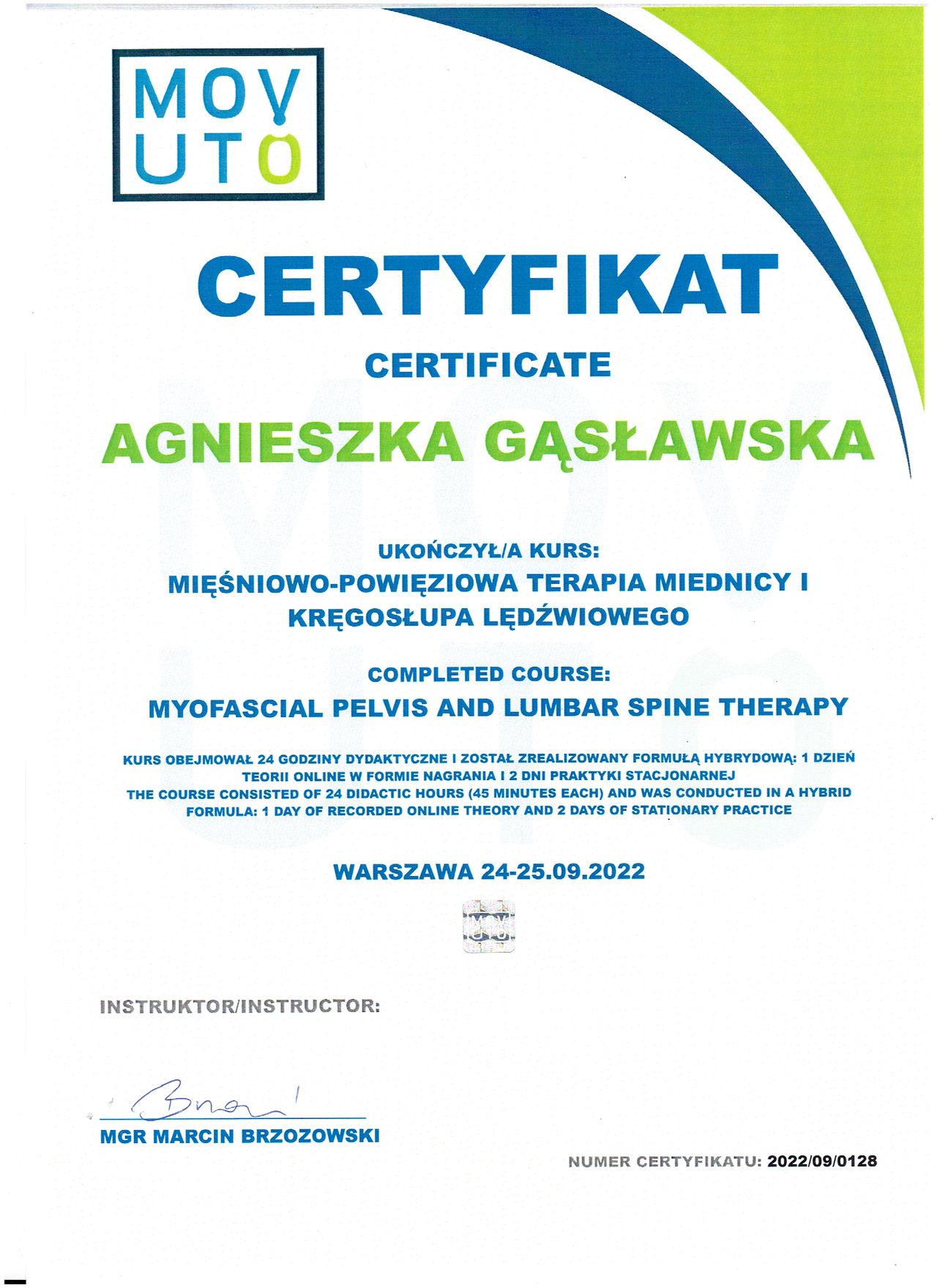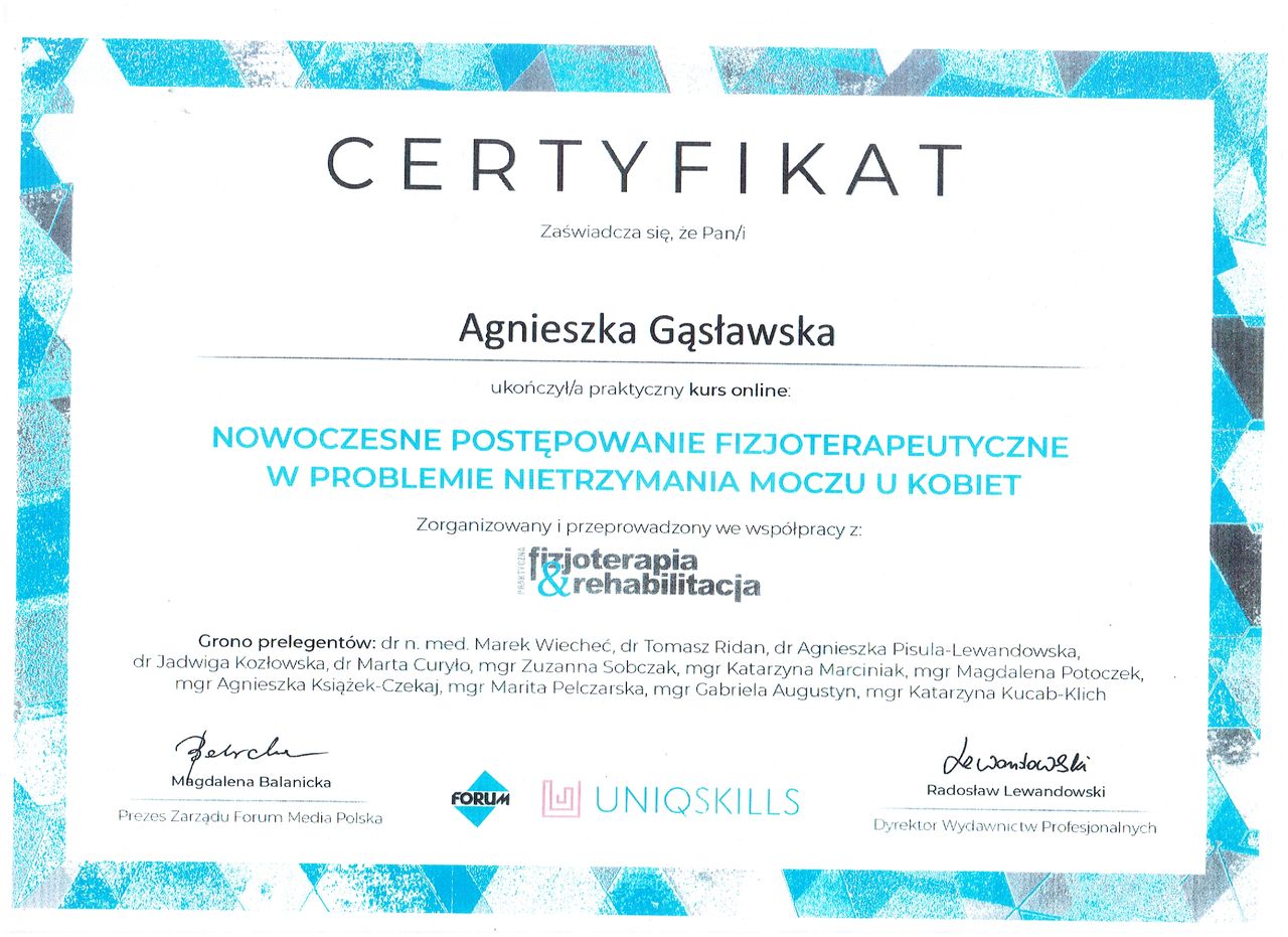 Nieustannie poszerzam swoje kwalifikacje, uczestnicząc w szkoleniach i kursach specjalistycznych z zakresu fizjoterapii uroginekologicznej, terapii manualnej oraz pracy z blizną i powięzią.