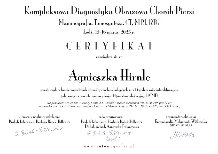 Jestem absolwentka Uniwersytetu Medycznego we Wrocławiu, z afiliacją którego jestem autorką artykułów naukowych i monografii.